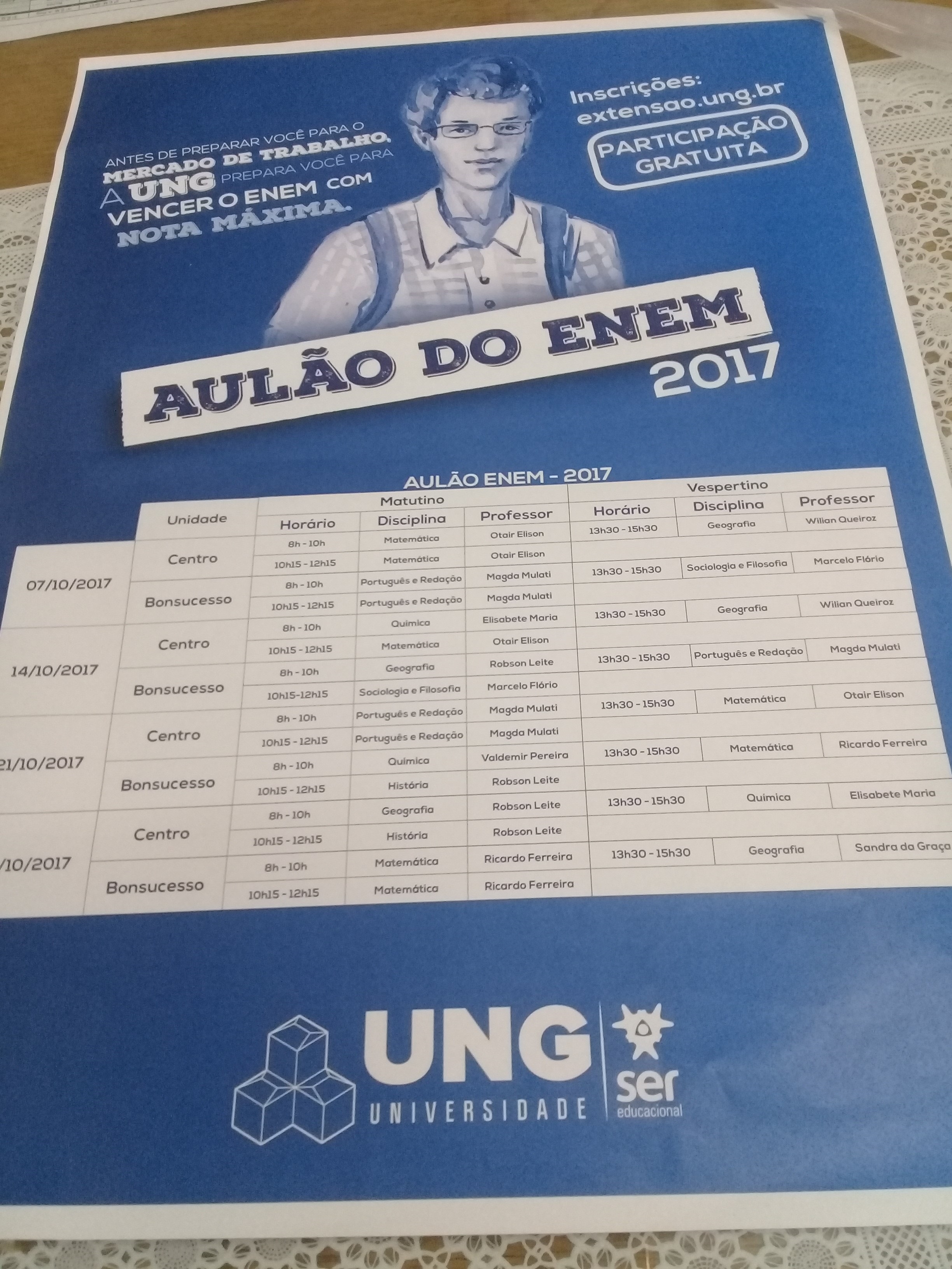 Em parceria buscando o sucesso do aluno no ENEM 2017.