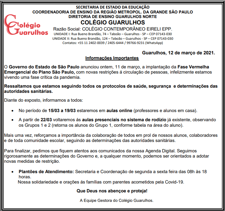 Comunicado - 12/03/2021