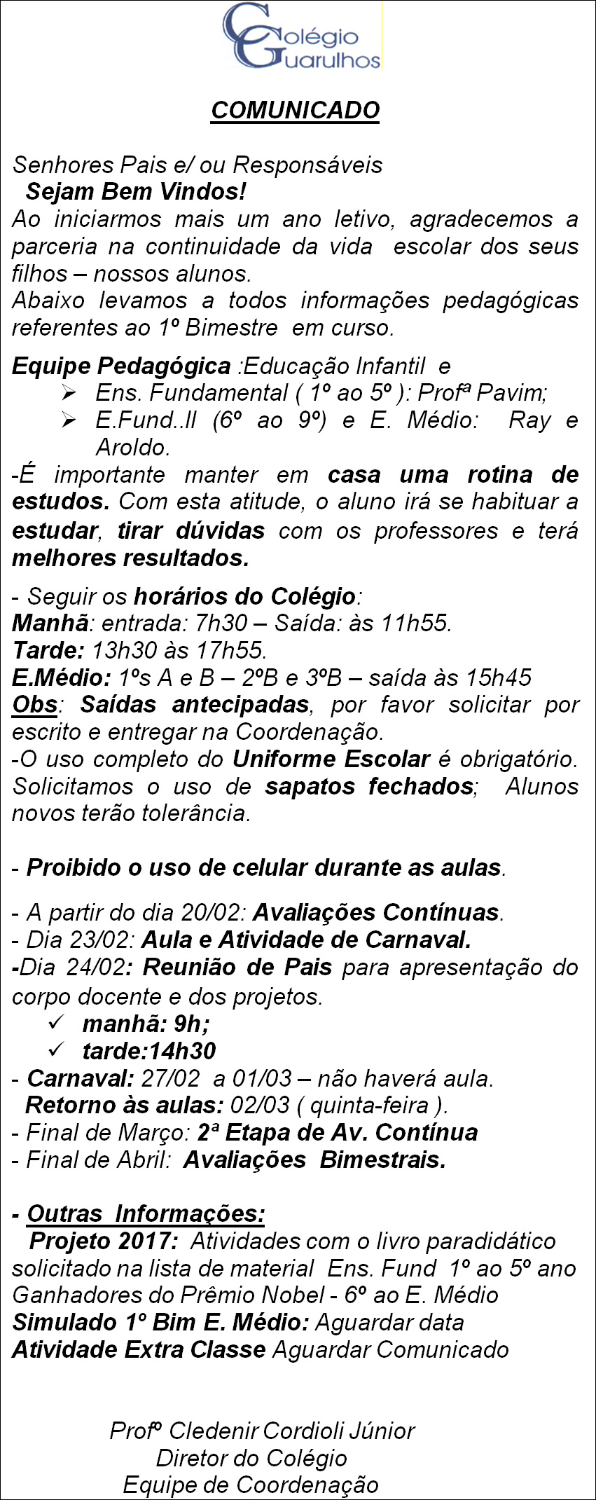 Comunicado - 20/02/2017
