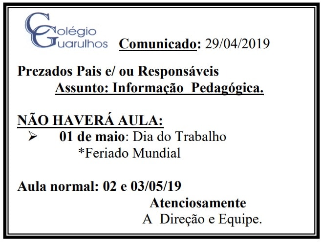 Comunicado - 29/04/2019
