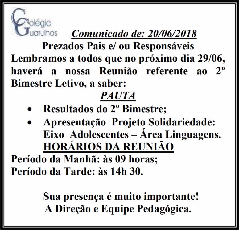 Comunicado - Reunião 2º Bim.