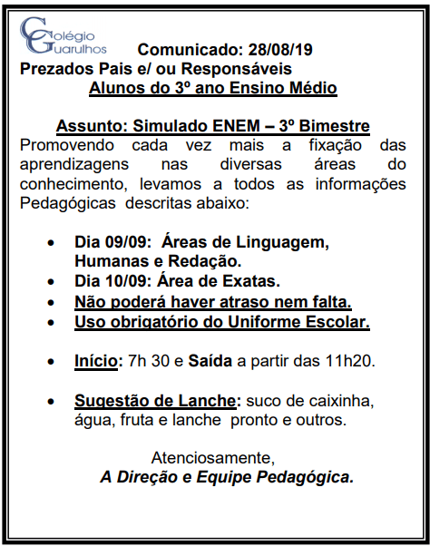 Comunicado - Simulado 3º ano do Ensino Médio