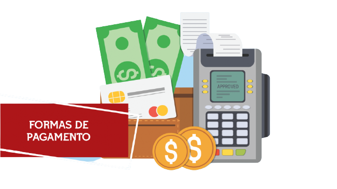 Pix, Boleto bancário, Cartão de crédito, Cartão de débito, Picpay,Nubank, Ng.Cash