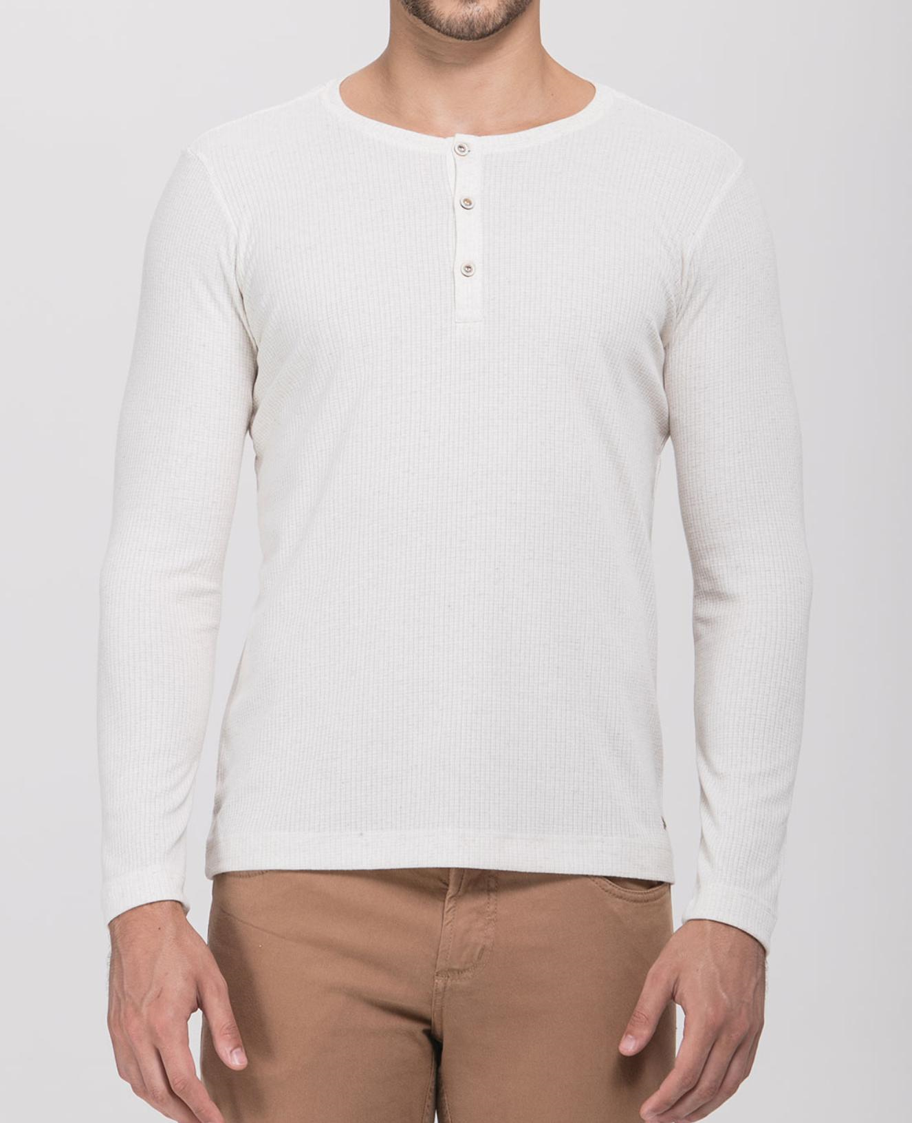 Camiseta Henley Areia M/Longa