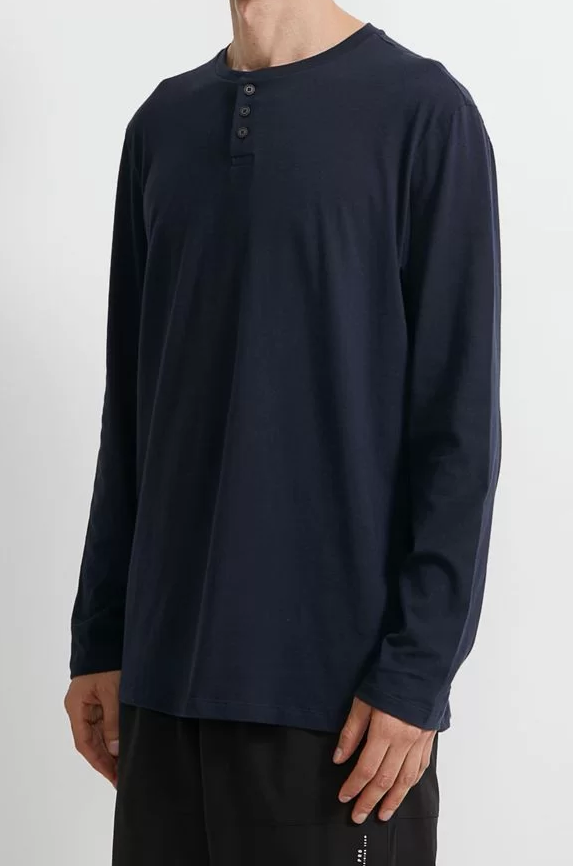 Camiseta Henley Marinha M/Longa