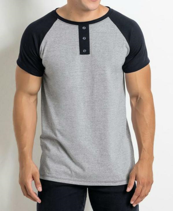 Camiseta Henley Cinza/Preta