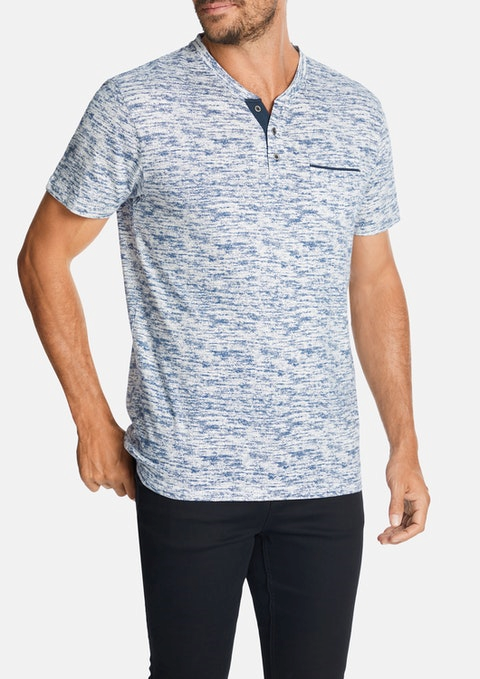 Camiseta Henley Manchada Azul