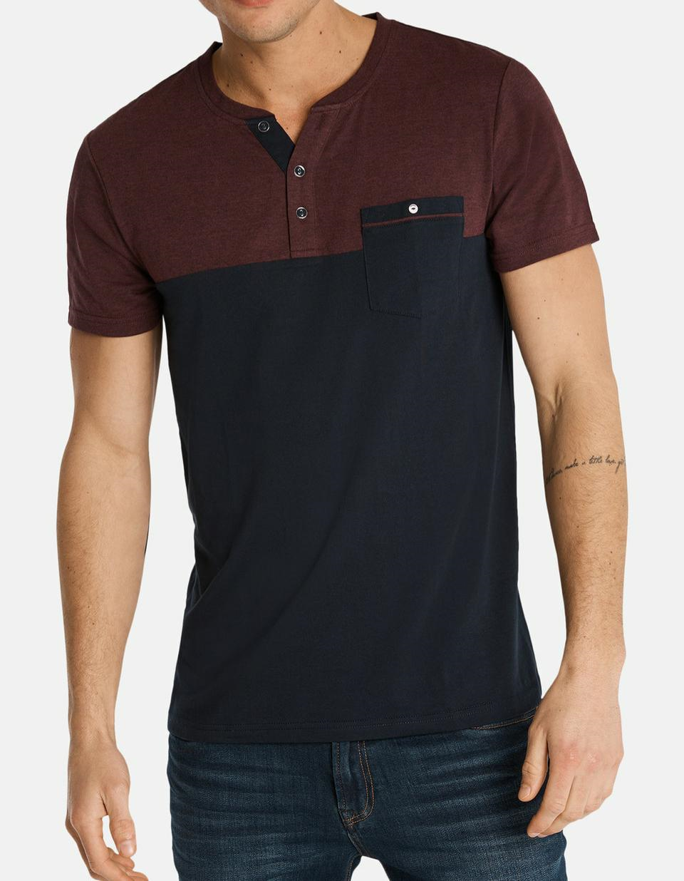 Camiseta Henley Marinho/Vinho