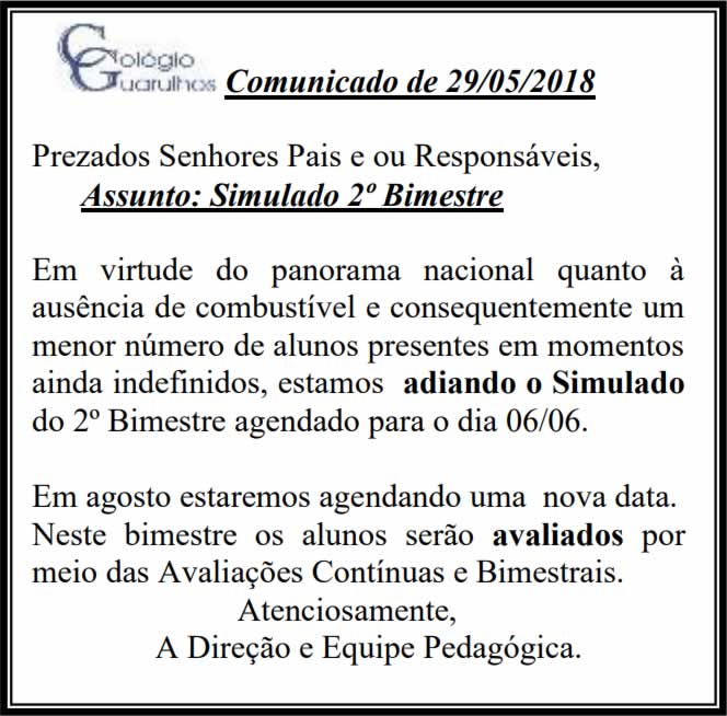 Comunicado - 29/05/2018