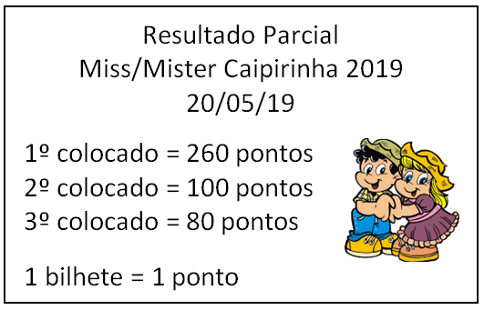 Resultado Parcial - Miss/Mister Caipirinha 2019