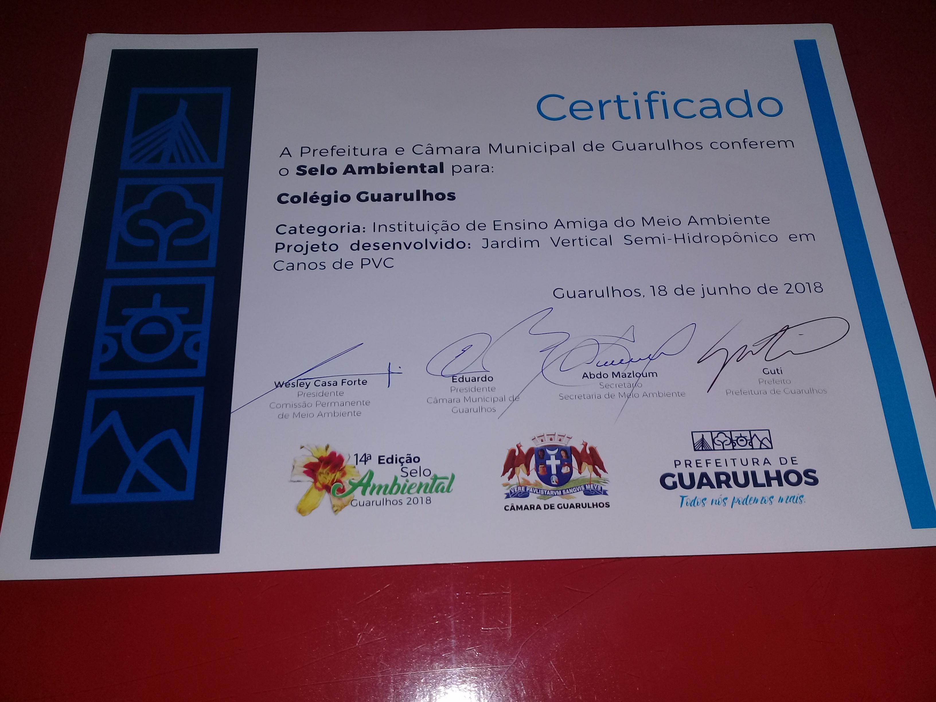 É com muita alegria que o Colégio Guarulhos recebeu novamente o Selo Ambiental neste ano de 2018.